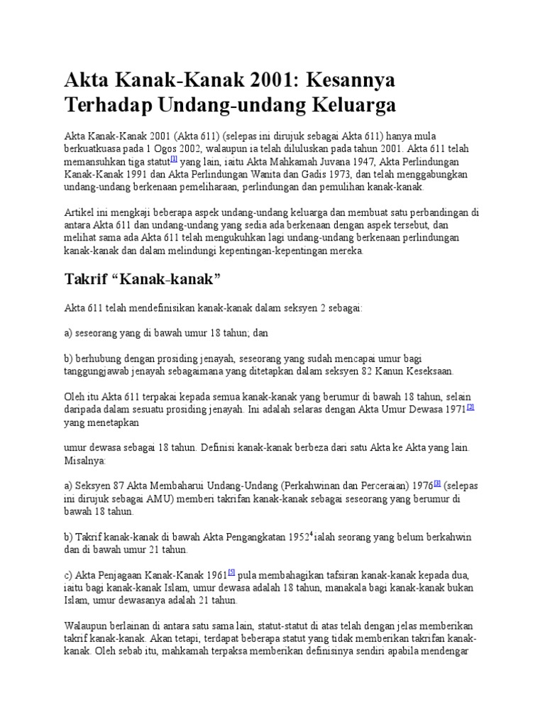 Akta Kanak Kanak 2001 from imgv2-1-f.scribdassets.com If you would like more information about how to print, save, and work with pdfs, highwire press provides a helpful frequently asked questions about. Timbalan menteri pembangunan wanita, keluarga dan masyarakat datuk azizah mohd dun berkata. Ini dapat dibangunkan kepada tahap optimum. Akta kanak kanak 2001 akta 611 dan peratuan peraturan textbooks on carousell. Akta ni memang dah sedia ada. Zamiah binti ahmad latipah binti kamdol norashikin binti ahmad siti zaleha binti aris. Opiat3 tanggungjawab peguam 2 jenis dadah 1: Opiat skop pembelajaran 1 definisi peguam 2 perkhidmatan yang ditawar oleh peguam 2 jenis dadah 1: