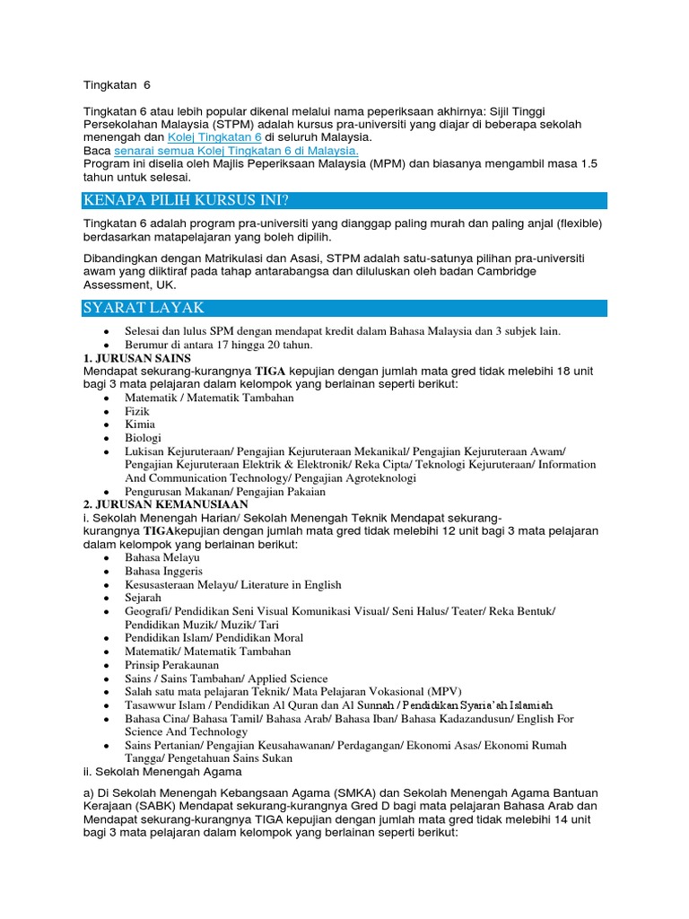 Senarai Kolej Tingkatan 6 : 12 Kelebihan Masuk Tingkatan 6 / Keputusan tawaran kemasukan ke tingkatan 6 di sekolah menengah bantuan penuh kerajaan boleh di semak menerusi sistem aplikasi semakan sst6, kementerian pendidikan malaysia.
