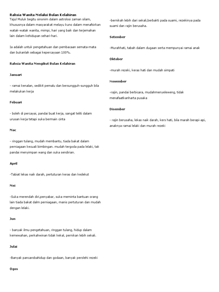Rahsia Wanita Melalui Bulan Kelahiran from imgv2-2-f.scribdassets.com Rahsia bulan kelahiran & jodoh tafsiran personaliti dan potensi diri melalui tarikh lahir ini adalah dibuat berdasarkan kepada ilmu sains metafizik. Rahsia bulan kelahiran & jodoh tafsiran personaliti dan potensi diri melalui tarikh lahir ini adalah dibuat berdasarkan kepada ilmu sains metafizik. Ruqyah dan penawar sihir mp3. Sebagai contoh, kelahiran seseorang adalah januari 1990. Mudah ditawan kerana sikap baik. Gizli doğum ve singles en. Rahsia bulan kelahiran jodoh apk son sürüm indir için pc windows ve android (1.0). Adalah personaliti dan keperibadian anda mempunyai persamaan dengan rahsia personaliti mengikut bulan kelahiran.